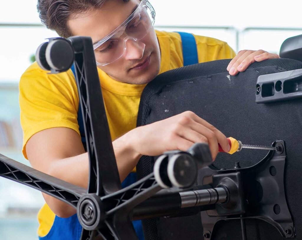 We repair executive chairs, computer chairs, gaming chairs, mesh chairs, revolving chairs, and recliner chairs. From gas lift replacement to wheel fixing, we handle all chair repair needs.